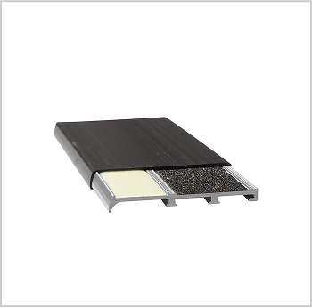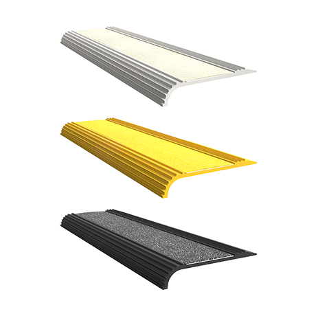 Low-profile 3″ aluminum nosing with 1″ and 1.5” replaceable photoluminescent or grit insert for anti-slip and contrast. Includes patented protective cover.